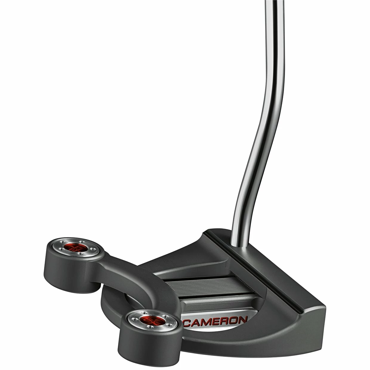 The Titleist Scotty Cameron Futura X putters are constructed with a precision milled 6061 aluminum body and feature T-shaped sight lines for effortless alignment. The unique head design features advanced perimeter stability weighting which combines a balance bar with deep heel-toe weighting and additional perimeter weighting under the face. In addition, the mid milled face provides a soft feel and sound while the frozen titanium finish combined with the red-dot graphics create a modern appearance. The Futura X putter provides unmatched stability while delivering a great roll.